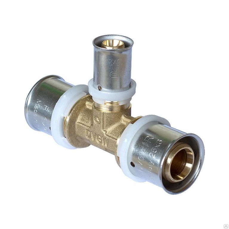 Тройник пресс, латунь 20х20х20мм, двойное уплотнение, европейская труба (2,0мм) UNI-FITT (Италия)