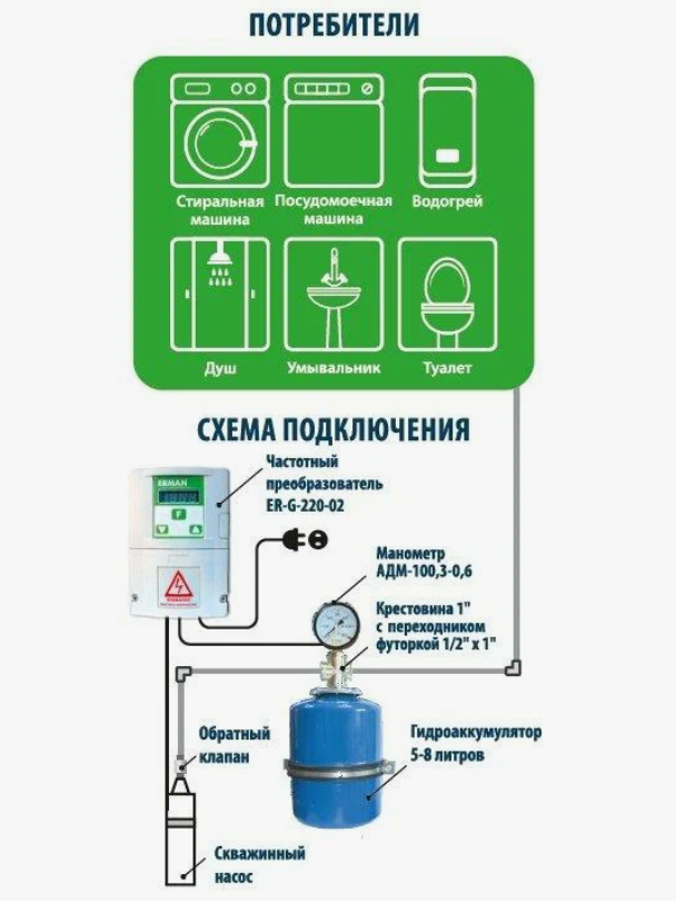 ERMANGIZER ER-G-220-04-2,2 (4 поколение) Инверторный блок управления насосом 220В/1ф до 2.2кВт, настройка 1,5-6бар. (заводская 3бар) IP55