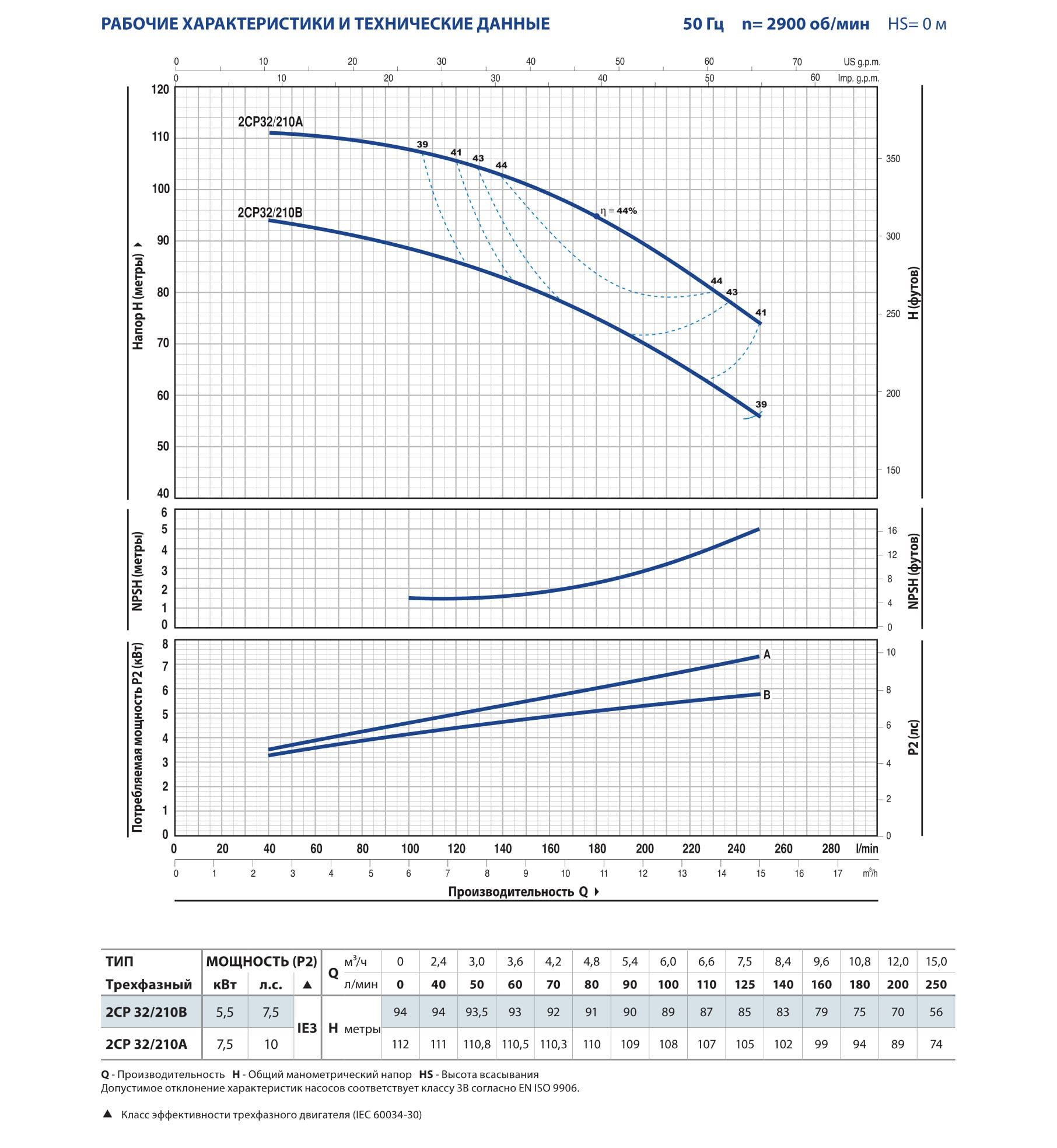 PEDROLLO 2CP 32/210B Насос поверхностный многоступенчатый 5.5кВт, 380В/3ф, макс. 94м. 15м3/час, жидкость от -10...+90*С, (2"х1-1/4"ВР) Италия
