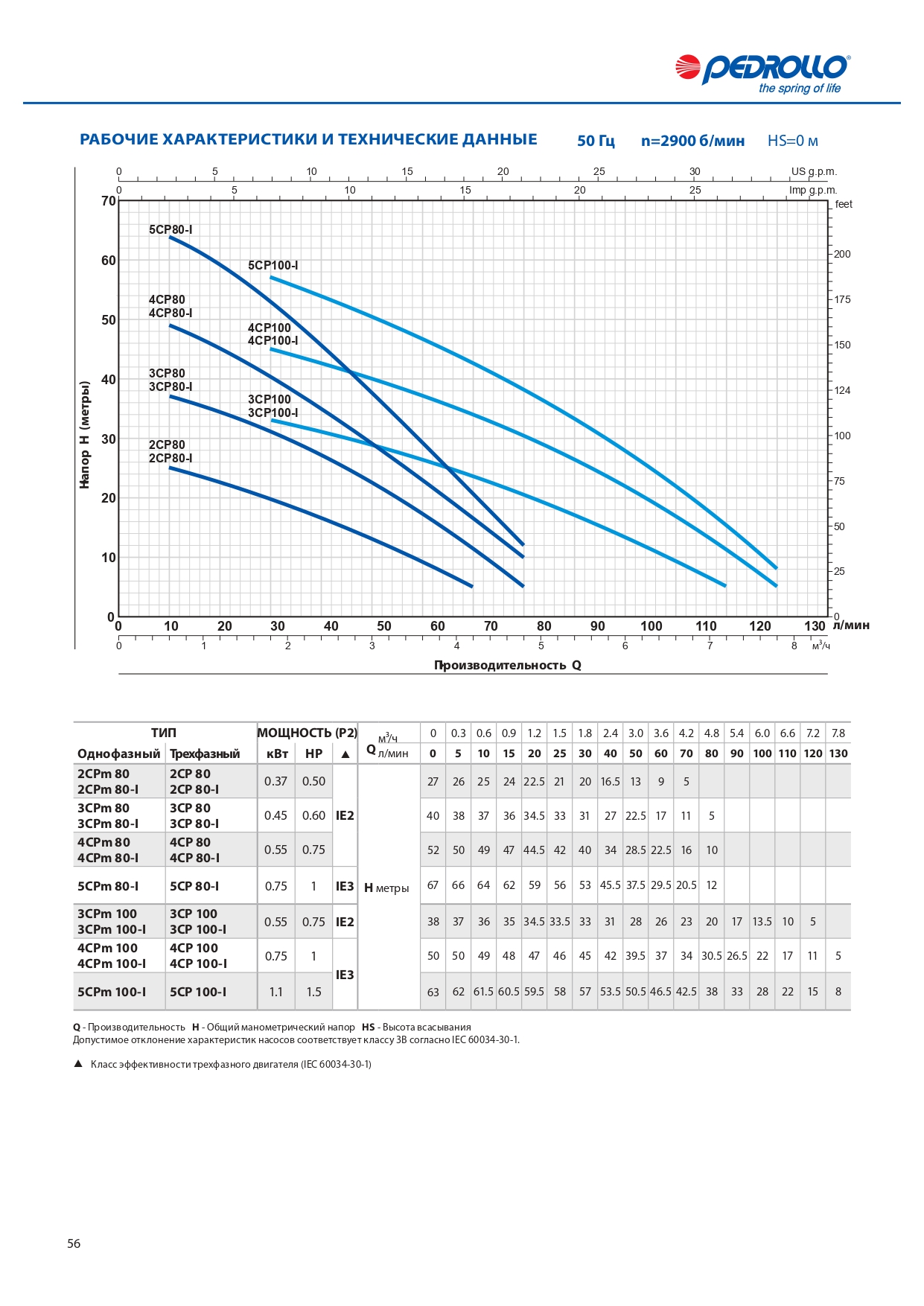 PEDROLLO 4CPm 100 Насос поверхностный многоступенчатый 0.75кВт, 220В, макс. 50м, 130л/мин. жидкость от -10...+40*С, (1"х1"ВР) Италия