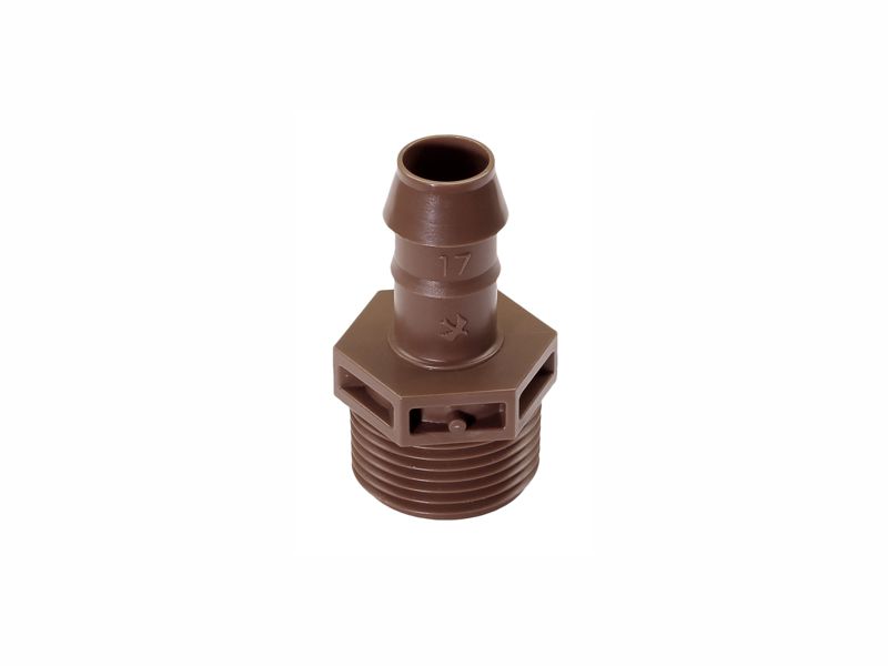 Штуцер трубки капельного полива, прямой 17х1/2"НР (коричневый)