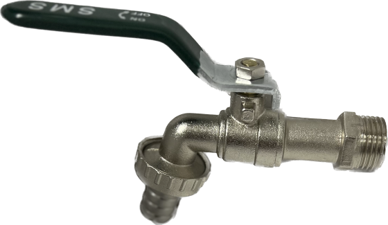 Кран водоразборный шаровой 1/2" НР ручка, со штуцером под шланг 14мм, СМС