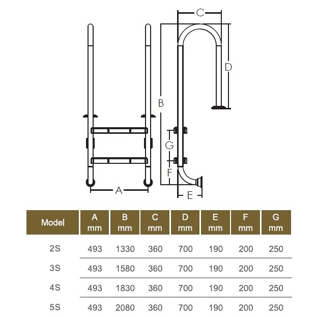 Лестница для бассейна 5 cтупеней (узкий борт) Emaux нержавеющая сталь AISI-304