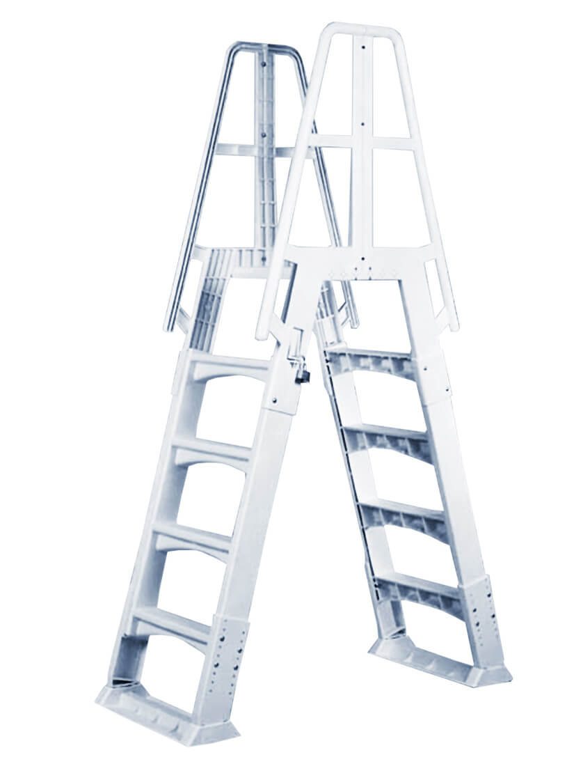 Пластиковая лестница предназначенная, как правило, в каркасных бассейнах. Одна сторона лестницы позволяет блокировать подъем в бассейн. Возможная высота борта до 1,3 метра, при ширине не более 200мм.