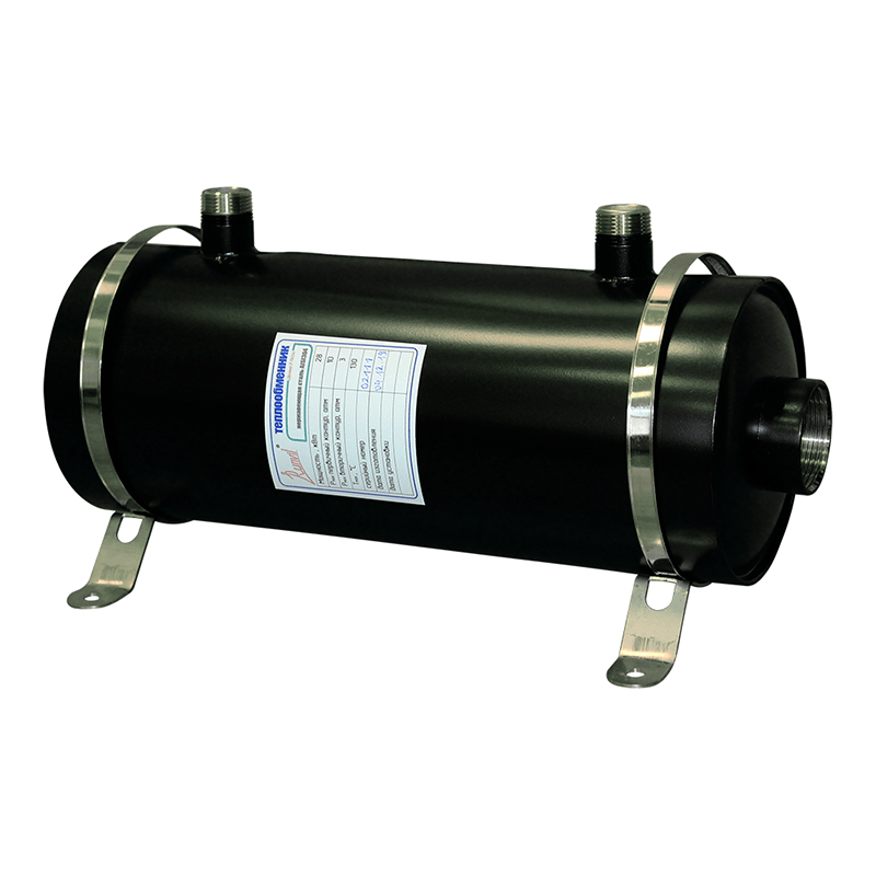 Горизонтальный теплообменник для подогрева воды в бассейне за счет передачи тепла от теплоносителя системы отопления или системы горячего водоснабжения. При работе теплообменника, вода из бассейна циркулирует по своему контору, а теплоноситель по своему (второму) контору теплообменника и некогда не смешиваются между собой.