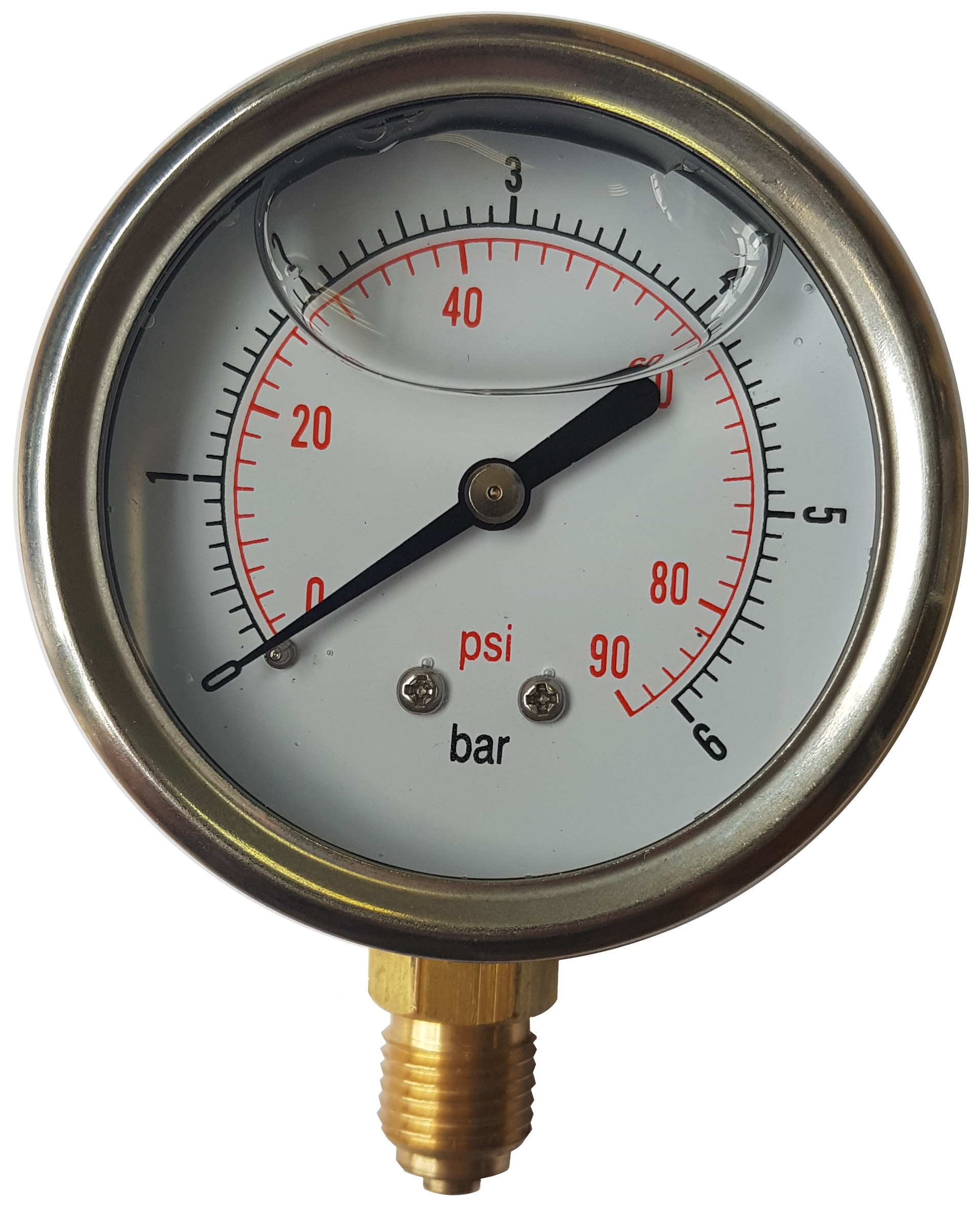 Манометр гидрозаполненный радиальный PRO-BLOCK 63/6 (63мм, 6бар, G1/4"НР), в глицериновой ванне, нерж. сталь, Италия