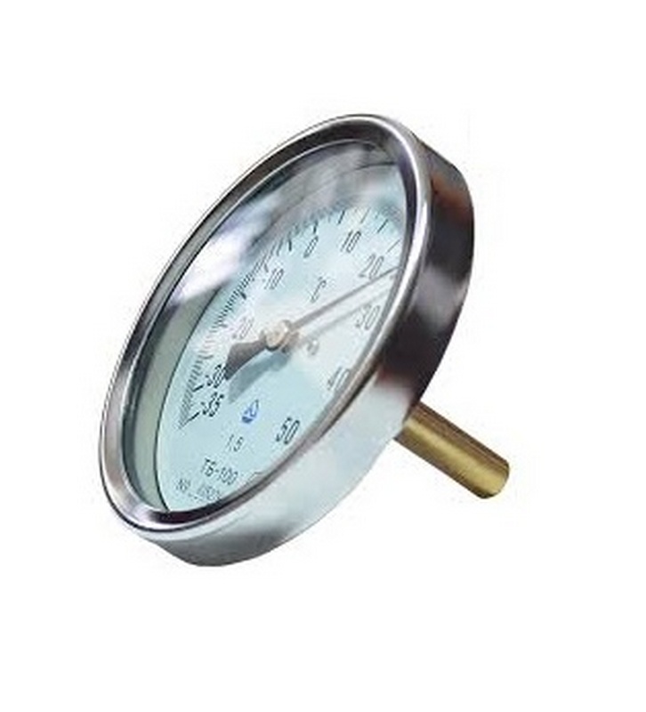Термометр биметаллический ТБф-120 аксиальный, (0...+200*С) кл.т. 1,5, Д-100мм, L-100мм, G-1/2, (новый, выпуск 12.2019г)
