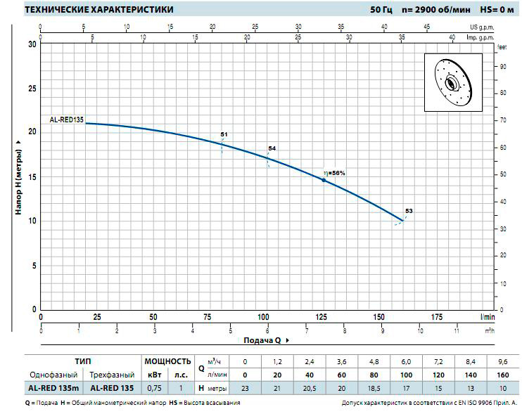 PEDROLLO AL-RED 135 насос поверхностный из нерж. стали 0,75кВт., 380В, макс. 23м, 160л/м, до +90*С (вход 1-1/4"ВР, выход 1"ВР) Италия
