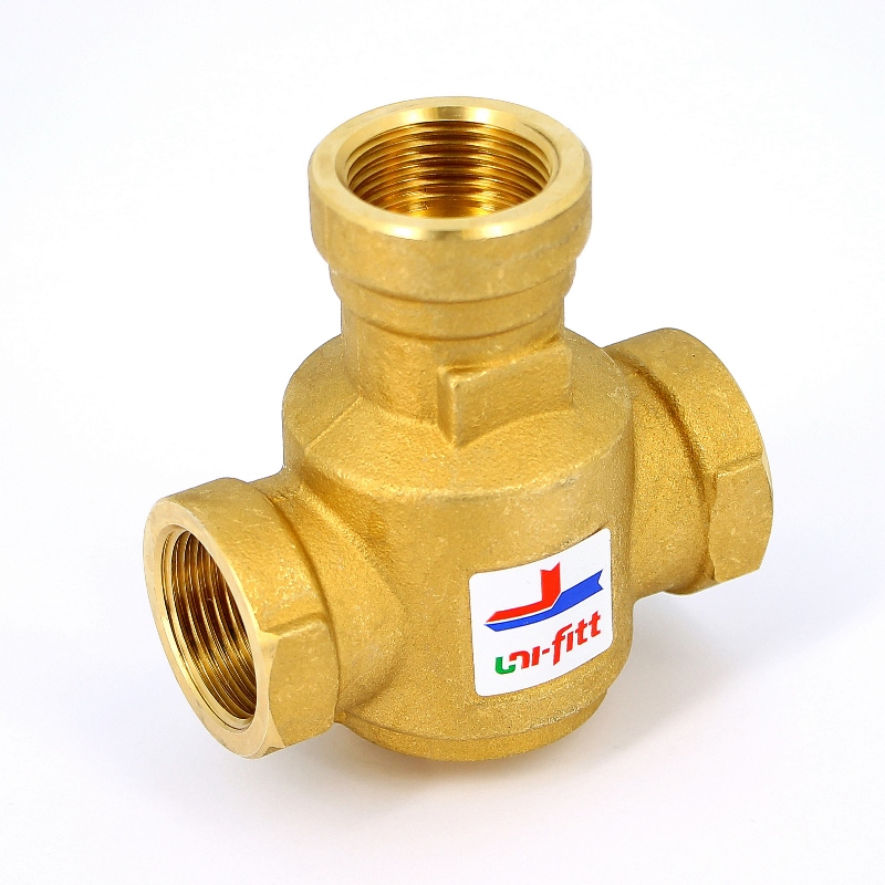 Клапан термосмесительный трехходовой для напольных котлов отопления, настройка 60*С, макс.10бар, Kvs 9, 1"ВР, боковое смешение, UNI-FITT, Италия