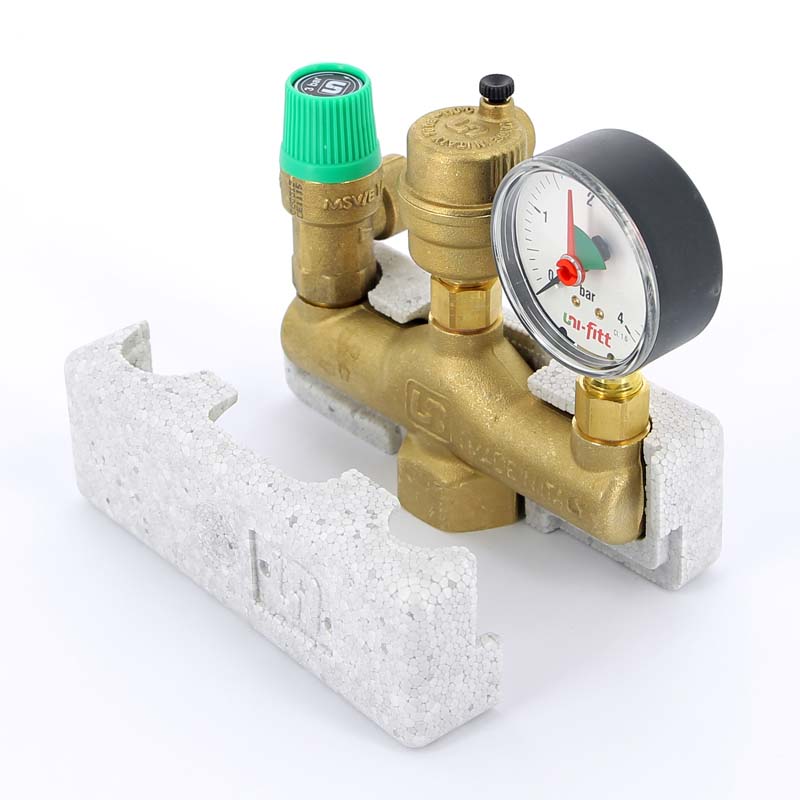 Группа безопасности котла до 50кВт, 1"ВР, 3бар, теплоизоляция UNI-FITT (Италия)