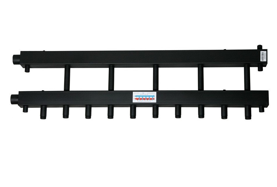 Распределительный коллектор отопительных контуров Аскон КК-25М/125/40/5D, вход/выход G11/2"ВР + (10 х 1"НР) + (4 х 1/2"ВР) крепление к стене поставляется отдельно!