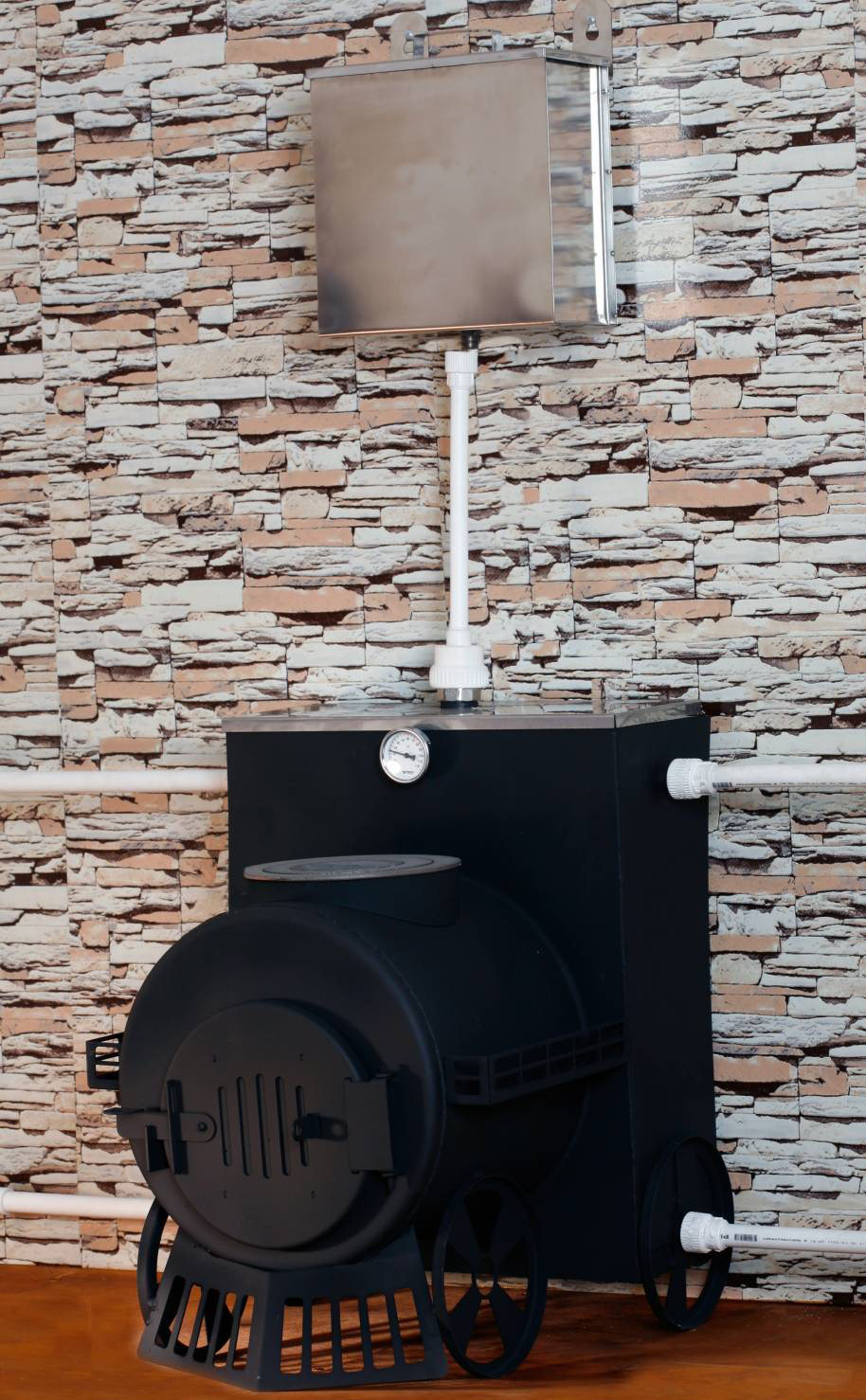 Твердотопливный котел «ПАРОВОЗ», отапливаемые помещения до 60м2 с чугунной конфоркой для приготовления пищи, котловая сталь, РОССИЯ