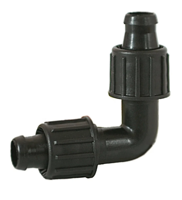 Угол трубки капельного полива 16х16мм (черный) Irritec цанговый зажим