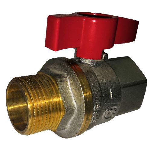 Кран шаровой латунь никельированная 1" ВВ бабочка, (DN25) полный проход, серия L, PN40.